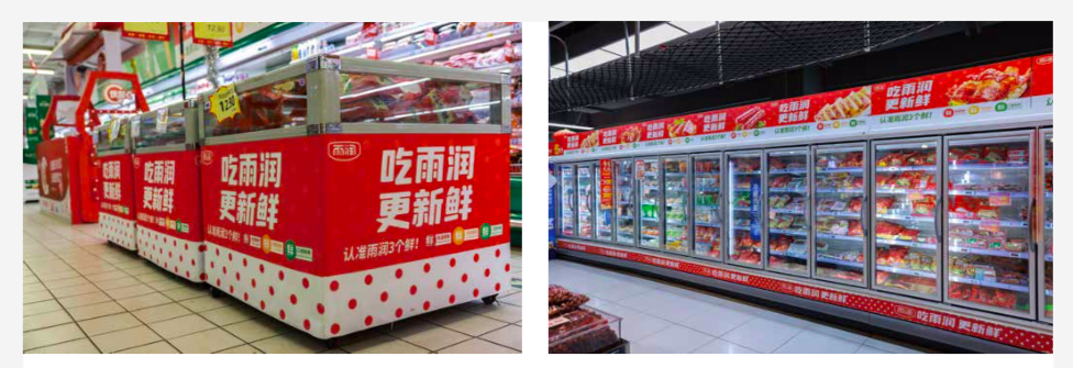 Yurun offers a wide range of products in their low-temperature meat line, which can make the fridge display arrangement complex. To address this, Hua & Hua developed a solution by incorporating dot patterns as the Brand Sign on all Yurun products. This unique design allows Yurun products to easily stand out in the fridge display.