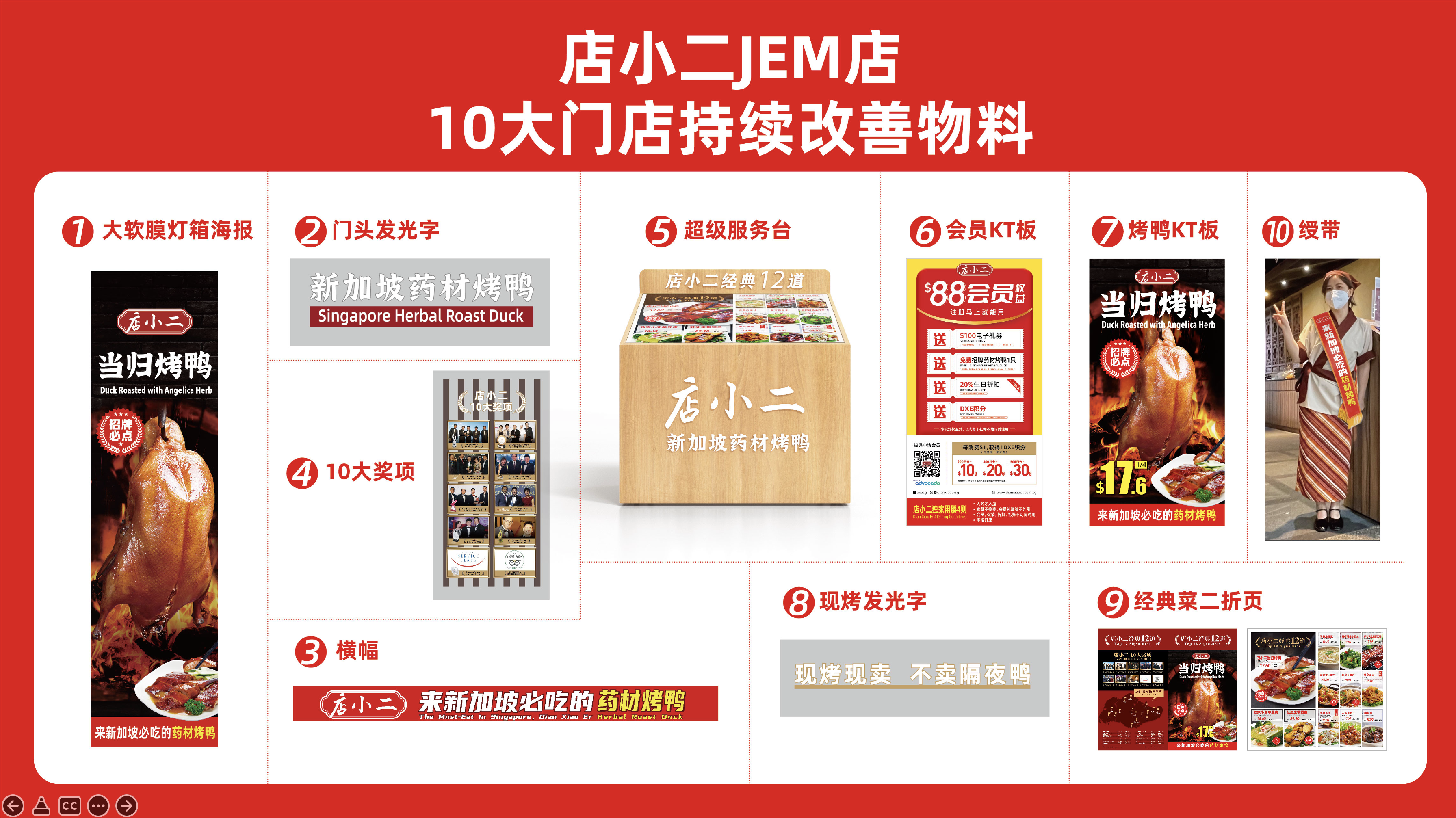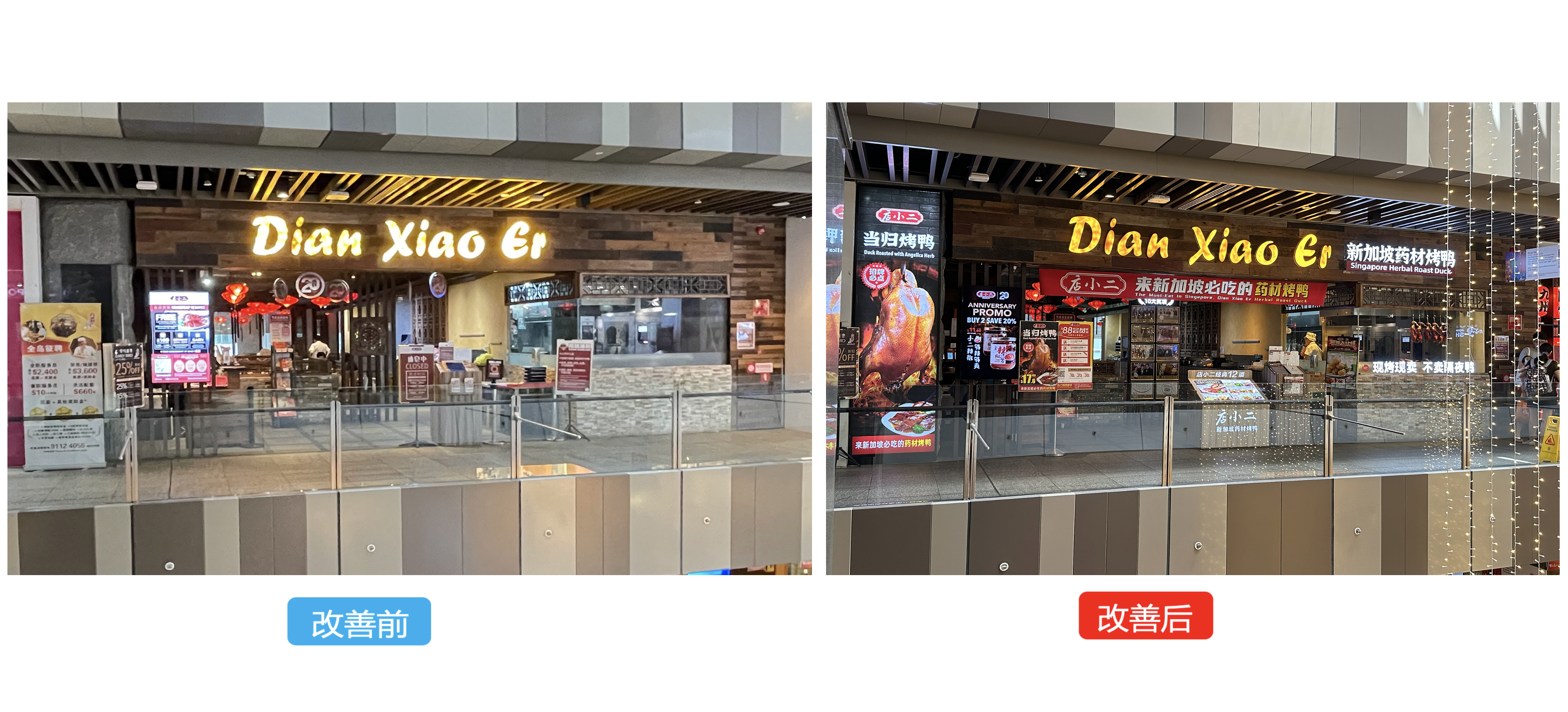 In addition to the super signs "2-Duck" and the brand proverb "Dian Xiao Er Herbal Roast Duck, Must-Eat In Singapore," Hua & Hua also continuously improves the local stores in Singapore. This is done by enhancing the store's communication materials to increase sales and operational efficiency.