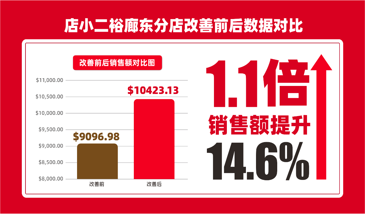Based on the premise of unchanged product prices and promotional policies, we have made continuous improvements to the installation of ten materials at the Yew Tee Point branch of Dian Xiao Er. The improved attention rate increased by 67.1% compared to the previous period, and sales increased by 14.6%.