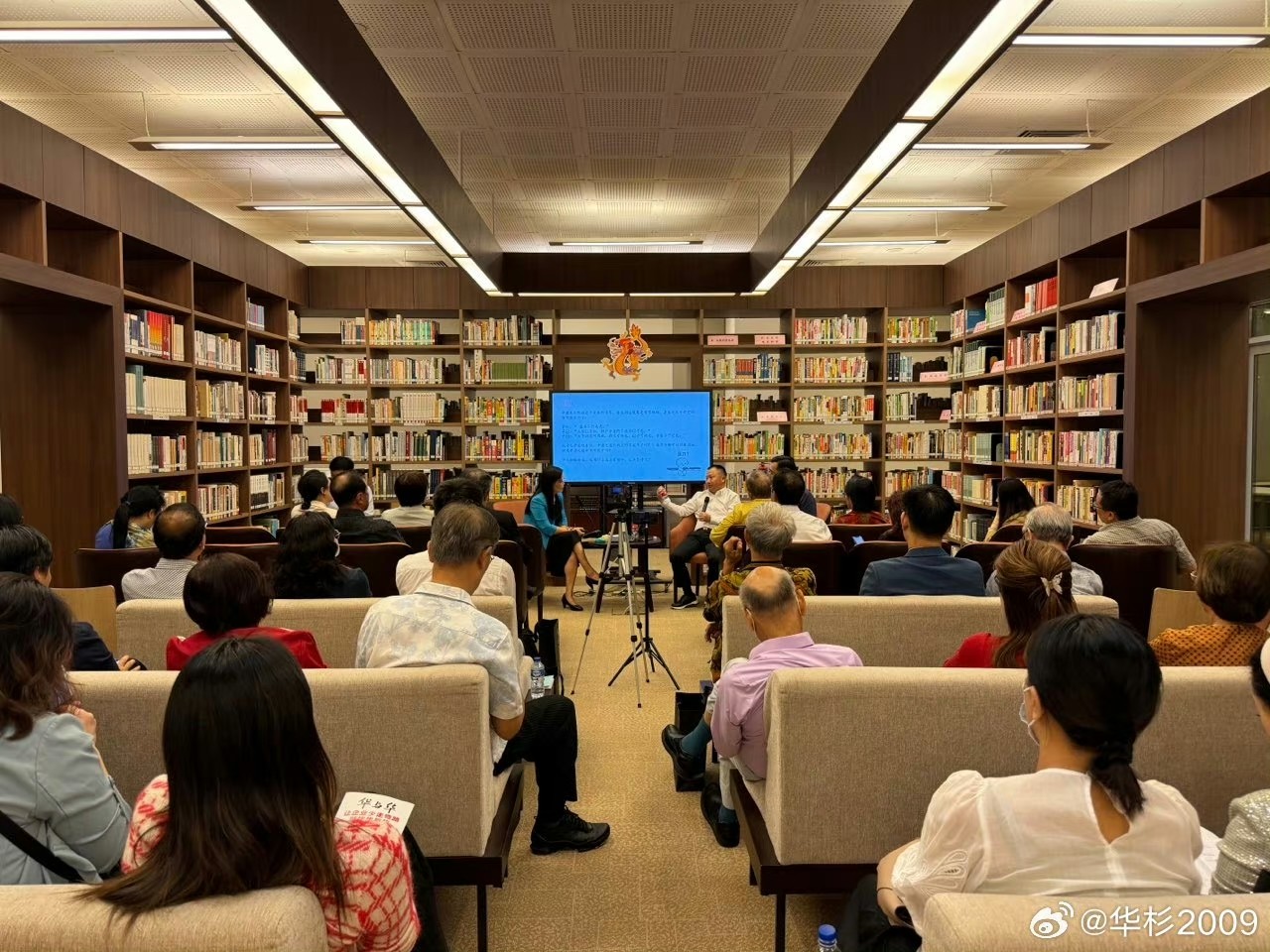 2024年(nian)2月1日(ri),華杉先(xian)生(sheng)做客新(xin)加(jia)坡著名(míng)文(wén)化學(xué)者王虹宇女士的(de)書房,在(zai)新(xin)加(jia)坡中(zhong)國(guo)文(wén)化中(zhong)心六樓圖書館咊(he)王女士進(jin)行了(le)關于(yu)儒傢(jia)思想的(de)心靈(ling)對話(hua),兼談了(le)《大(da)學(xué)》咊(he)《中(zhong)庸》。對話(hua)最後(hou)環節(jie),華杉先(xian)生(sheng)贈送中(zhong)國(guo)文(wén)化中(zhong)心2套係(xi)列叢書,中(zhong)華文(wén)化中(zhong)心副主(zhu)任孔媛女士回贈了(le)中(zhong)心的(de)龍年(nian)吉祥物(wù)。本(ben)次對話(hua)國(guo)內(nei)“華與華商(shang)學(xué)”抖音号、“華與華”視頻号、“華杉2009”咊(he)海外“Sam Hua華杉”Facebook、“Sam Hua華杉”Youtube 五箇(ge)平檯(tai)同步直播,吸(xi)引了(le)超過(guo)5.2萬觀看人(ren)次。