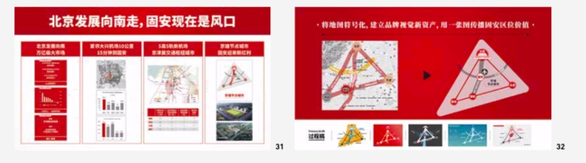 Through research, Gu'an is located in the center of three cities, Beijing, Tianjin and Baoding, just across the Yongding River from Daxing, Beijing. After analyzing Gu'an's location advantages, we chose China's largest super landmark - Beijing's Tiananmen Square as Gu’an’s "landmark symbol". Gu'an is 50 kilometers south of Tiananmen Square, so we extracted the phrase "50 kilometers south of Tiananmen" as the slogan. With this, when people hear "50 kilometers south of Tiananmen," they immediately know where Gu'an is, and its investment value is also revealed. We also got our complete slogan from the song "I Love Beijing Tiananmen" - "I Love Beijing Tiananmen, 50 kilometers Farther South". This slogan gave the city a pair of wings, and let the brand “fly”.