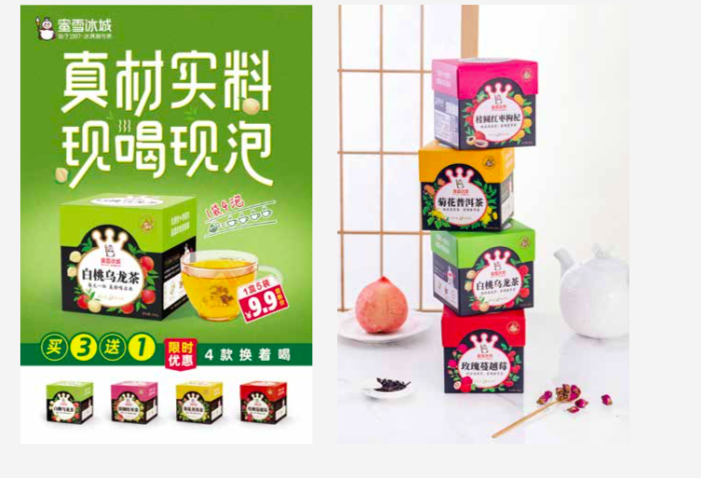Insight into the reasons for purchasing each product, creative design for product naming, product advertising, and product posters to promote best-selling products. Fully utilizing the effective sales space in MIXUE stores, the development of retail products such as "tea bags" laid the foundation for the "Snow King Magic Shop".