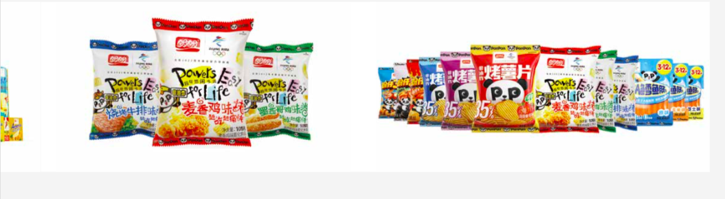 Puffed Foods: PanPan MaiXiang Chicken-Flavored Snacks, PanPan Potato Chips, Panzi Three Brothers Snacks.