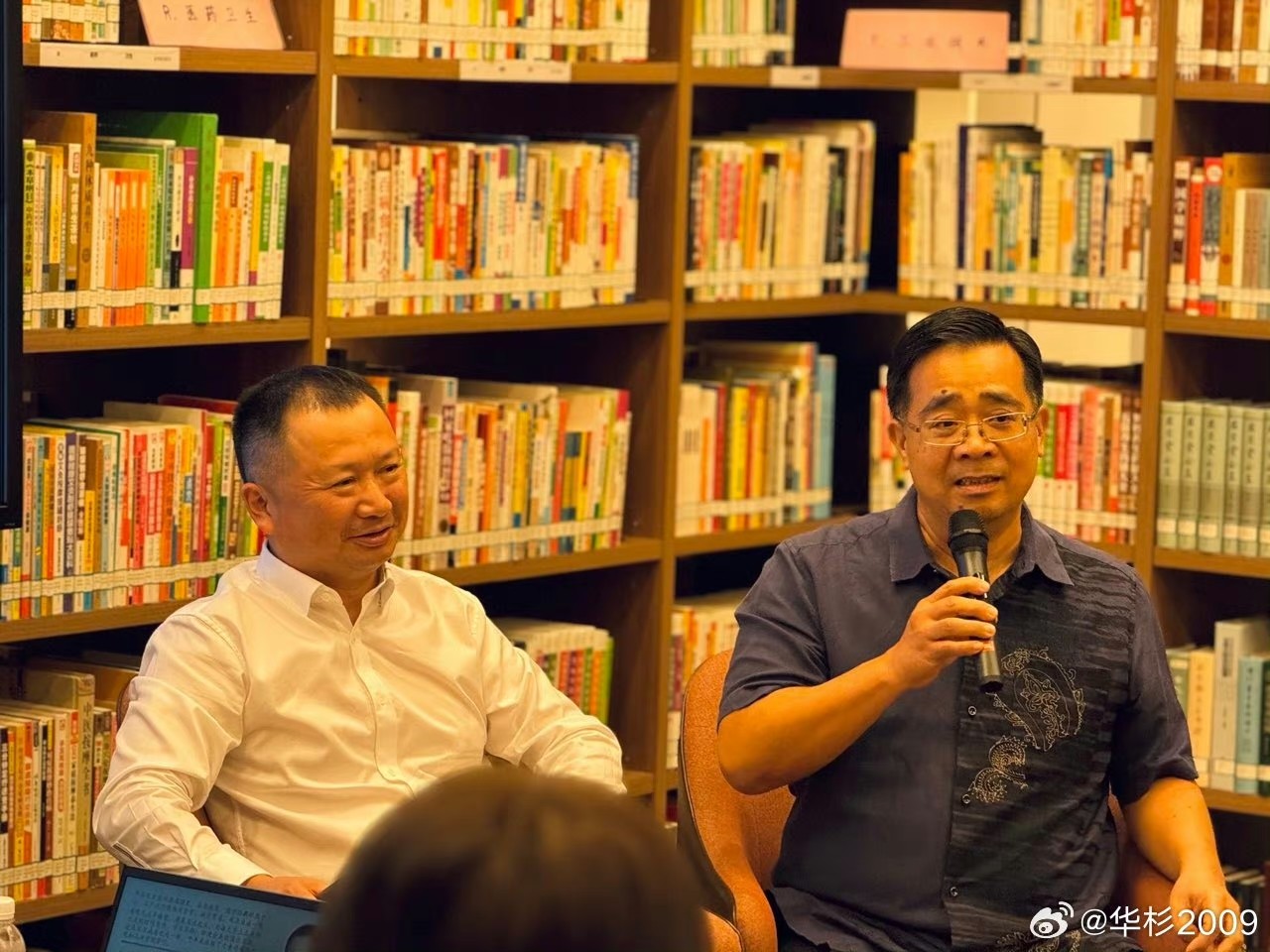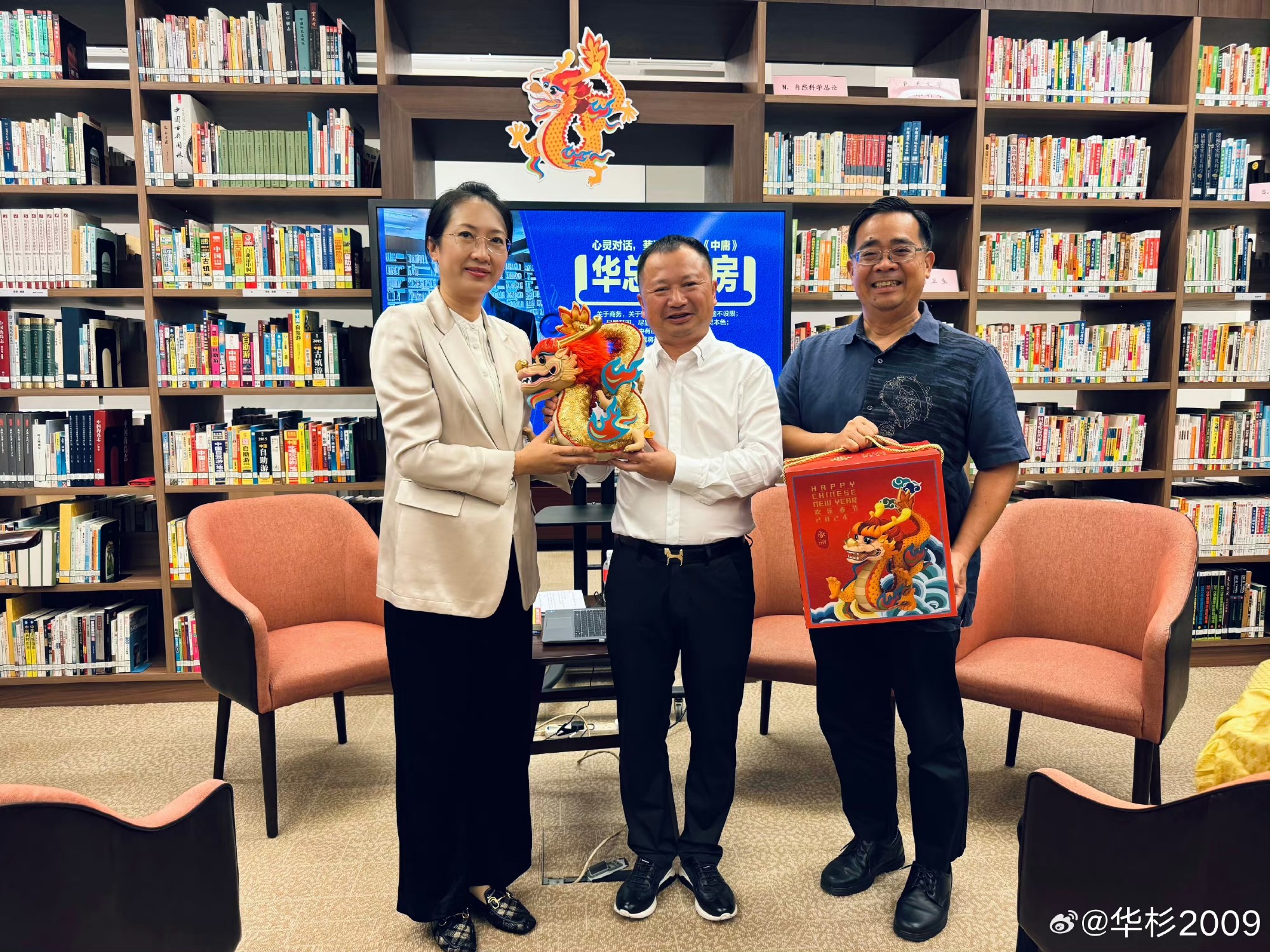 2024年(nian)2月1日(ri),華杉先(xian)生(sheng)做客新(xin)加(jia)坡著名(míng)文(wén)化學(xué)者王虹宇女士的(de)書房,在(zai)新(xin)加(jia)坡中(zhong)國(guo)文(wén)化中(zhong)心六樓圖書館咊(he)王女士進(jin)行了(le)關于(yu)儒傢(jia)思想的(de)心靈(ling)對話(hua),兼談了(le)《大(da)學(xué)》咊(he)《中(zhong)庸》。對話(hua)最後(hou)環節(jie),華杉先(xian)生(sheng)贈送中(zhong)國(guo)文(wén)化中(zhong)心2套係(xi)列叢書,中(zhong)華文(wén)化中(zhong)心副主(zhu)任孔媛女士回贈了(le)中(zhong)心的(de)龍年(nian)吉祥物(wù)。本(ben)次對話(hua)國(guo)內(nei)“華與華商(shang)學(xué)”抖音号、“華與華”視頻号、“華杉2009”咊(he)海外“Sam Hua華杉”Facebook、“Sam Hua華杉”Youtube 五箇(ge)平檯(tai)同步直播,吸(xi)引了(le)超過(guo)5.2萬觀看人(ren)次。
