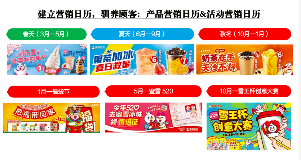 Set the spring, summer, autumn, and winter promotion themes according to seasonal attributes, forming a promotion rhythm for MIXUE products and perfecting the product marketing calendar.